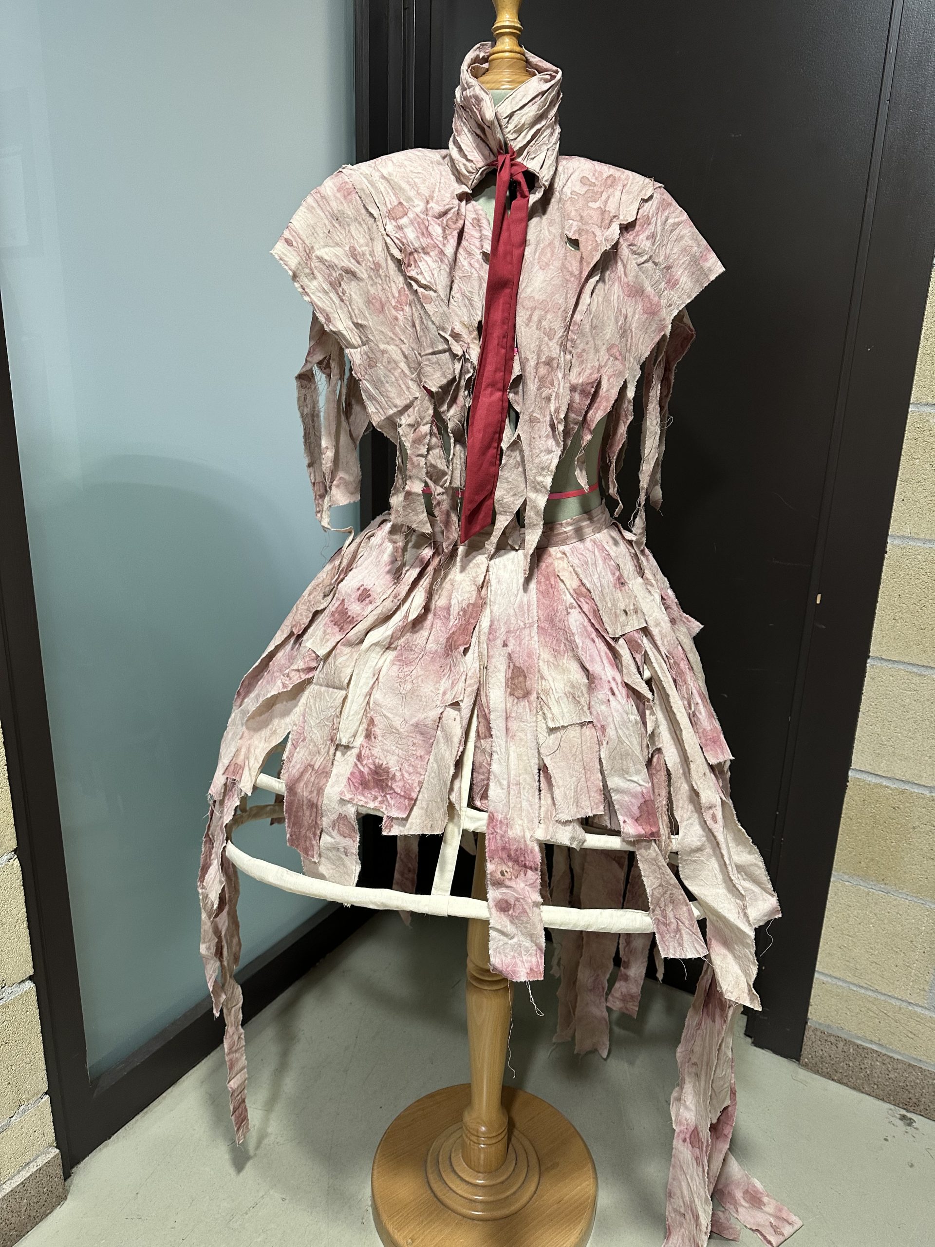 My inspiration was a fairy tale princess like ball that doesn’t come out as expected because the princes is a tragic character. Also, the painter Francis Bacon inspired me to complete the look with his use of colours for the human skin and its carnality. Sustainability is important because I think it’s the only way out of this continuous increase in pollution and environmental problems that we are having, and to which we are sadly the origin.