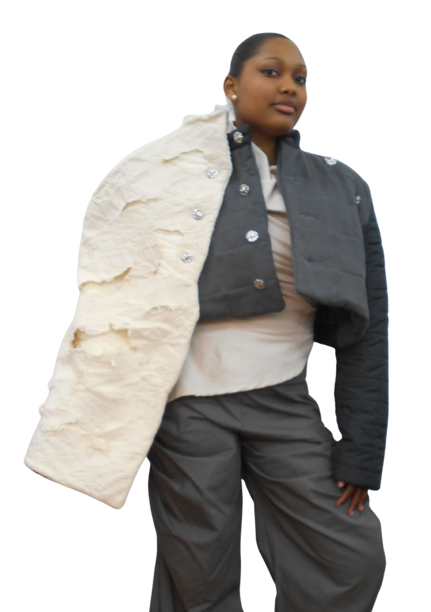 Over the past months, I developed the concept of a reversible and transformable jacket focused on versatility and durability. I started with research on sustainable fashion and transformable garments, which helped define my design direction. I then explored different materials and tested combinations of fleece and quilted fabric. One of the biggest challenges was balancing comfort and structure while ensuring the garment worked in both reversible configurations. Through prototyping and testing, I adjusted proportions and construction details. This process helped me better understand how design, materials, and sustainability are interconnected.