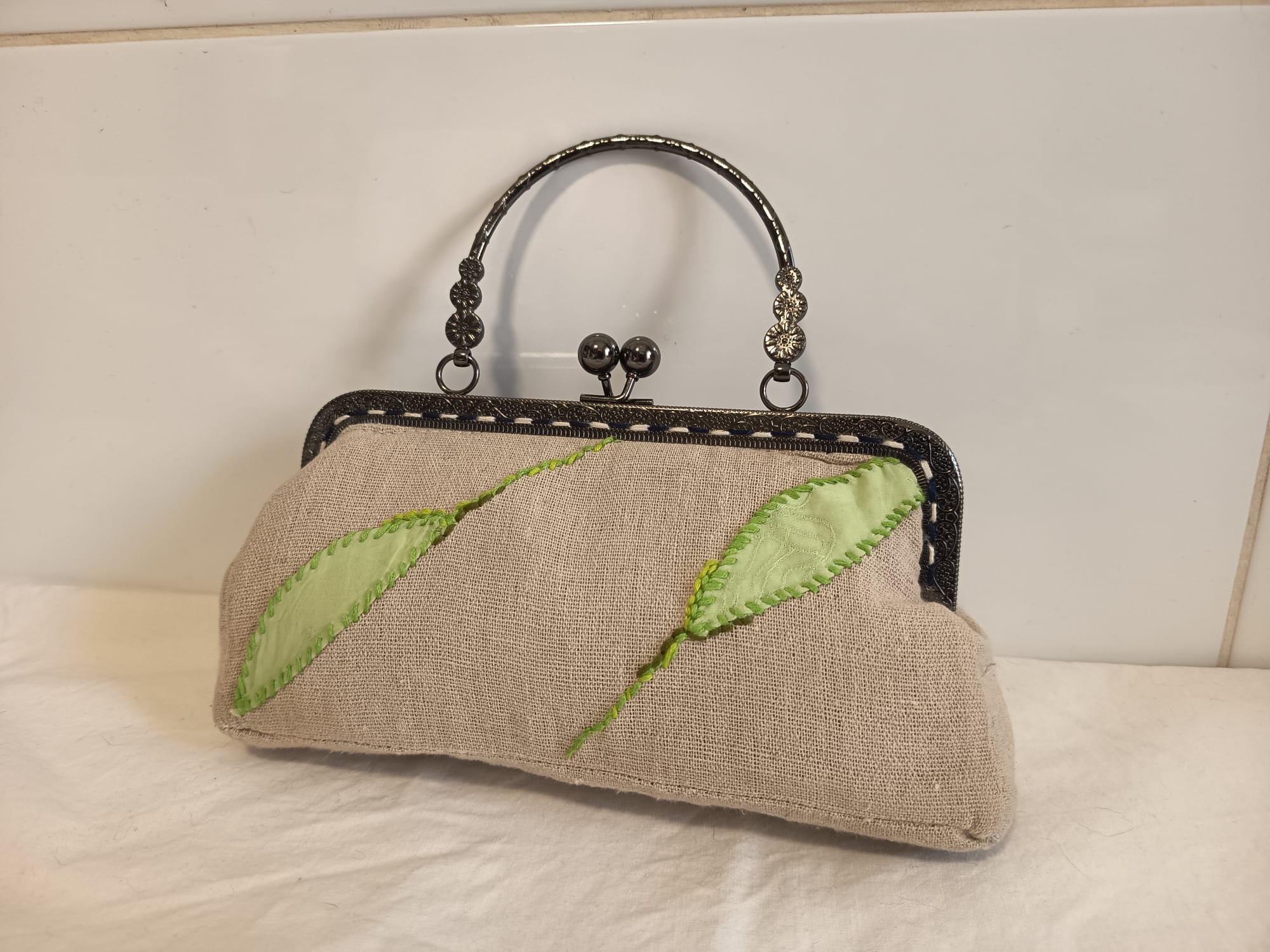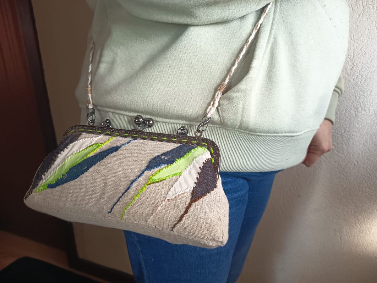 Natural tones (hemp and linen fabrics, mixed with upcycled textile elements)