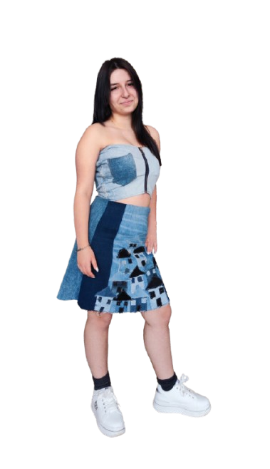Our motivation was to show that sustainable fashion can be both beautiful and practical. Old jeans can be transformed into a modern garment that appeals to the younger generation while remaining unique and distinctive. This is an important step towards a more environmentally friendly lifestyle.