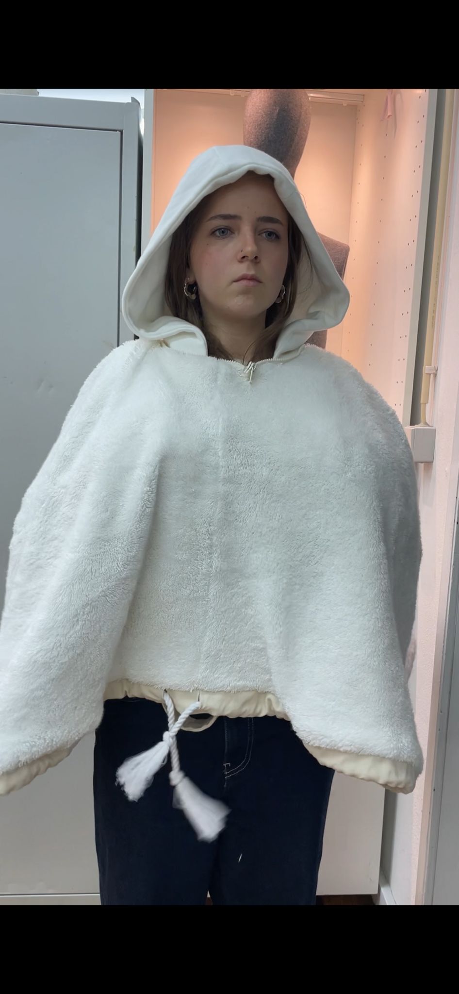 Over the past eight months, I experimented with various materials and prototypes to achieve a garment that functions as a hoodie and two types of bags. I switched from raffia and feathers to Terry cloth to improve durability, washability, and sustainability. Key challenges included aligning the ideal visual concept with available materials, adjusting the hood mechanism, and resizing shoulder straps. Each challenge was addressed through prototyping, mentor guidance, and iterative design improvements. By testing and refining, I learned to make functional, appealing, and versatile pieces. Deadstock materials and multi-functional design became the core of the project. The final garment reflects both cultural inspiration and practicality. I also focused on minimizing waste and ensuring the piece could be reused or recycled. This iterative process taught me the importance of flexibility, patience, and creativity in sustainable fashion development.